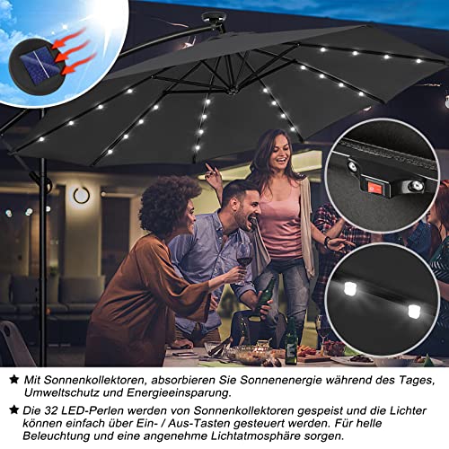 ☀️【Leistungsstarkes Solarpanel 】Solarbetriebene LED-Leuchten mit EIN / AUS-Schalter, kein Strom oder Netzkabel benötigt. Am Abend leuchten 32 LED-Lichter auf und der Schirm hält Sie beschattet, wenn Sie tagsüber Getränke mit Ihren Freunden genießen und das für ein angenehmes Ambiente sorgt.