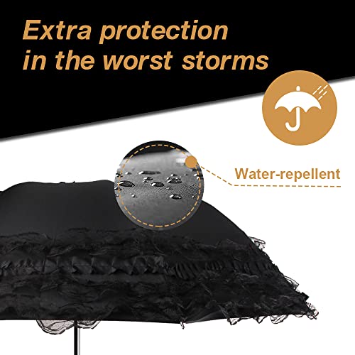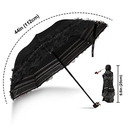 YUEHUA Prinzessin spitze vintage spitze uv sonnenschirm falten 3d blume stickerei regenschirm 3 falten Black regentage, schneetage, sonnentage zur verfügung
