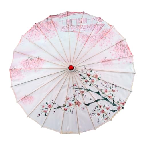 YUGSHNKFC Eleganter, handgefertigter asiatischer Sonnenschirm mit traditionellem Muster, Bambus, Seide, Regenschirm für Hochzeiten und Cosplays