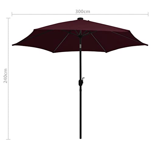 Home & Garden Tools–Sonnenschirm mit LED-Lichtern und Aluminiumstange, 300 cm, bordeaux rot