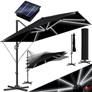 €229,80Produkt kaufenKESSER® Sonnenschirm LED Solar Ampelschirm SUN XL 300 x 300 cm Inkl. Abdeckung +Windsicherung Drehbar Neigbar Kippbar Marktschirm Groß 360° Rotation, Gartenschirm mit Kurbel Sonnenschutz, Schwarz