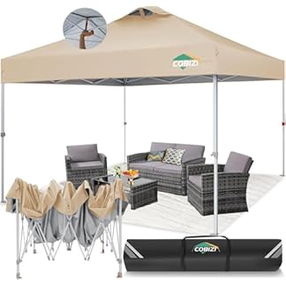 €74,99Produkt kaufenCOBIZI Pavillon 3x3m Wasserdicht Stabil Faltpavillon Pop up Gartenpavillon Partyzelt Bierzelt Faltbar Gartenzelt mit 4 Sandsack, Höhenverstellbar, Grua